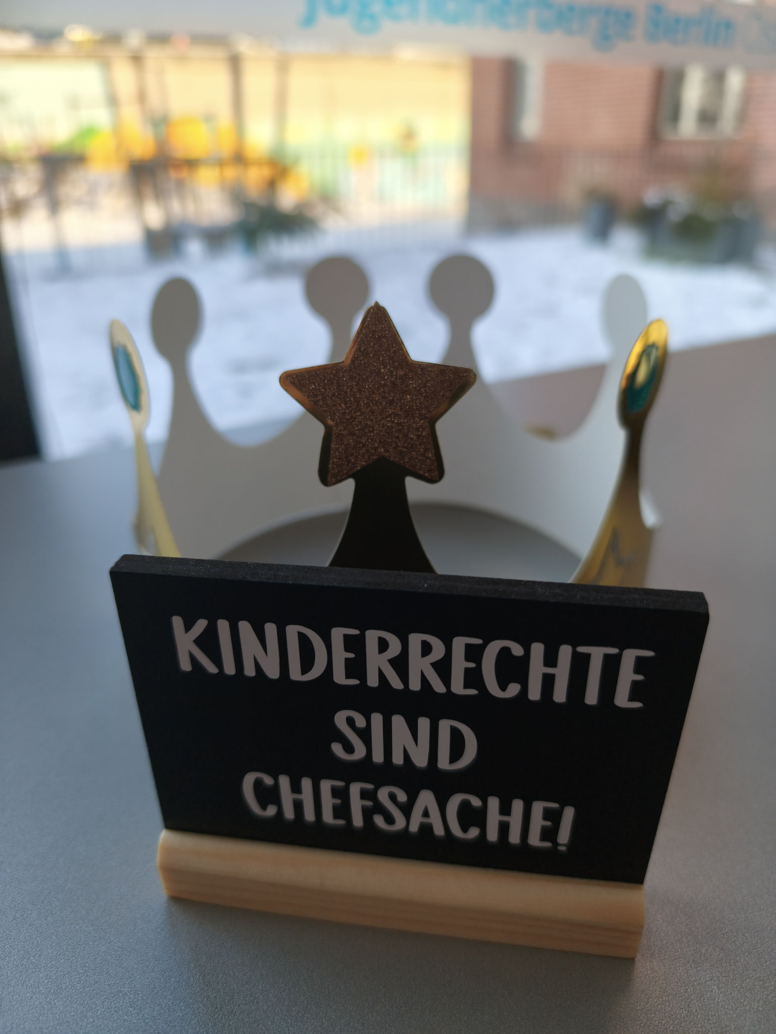 Auch beim Neujahrsempfang der Stadt waren unsere Lüdenscheider Sternsinger*innen vertreten. Mit ihrem Auftritt setzten sie ein sichtbares Zeichen für Gerechtigkeit und die Rechte von Kindern weltweit und machten nochmal deutlich, dass Kinderrechte Chefsache sind – nicht nur auf Bundesebene, sondern auch kommunal. Die Tafel mit diesem Merksatz, die bereits in Berlin an die Minister überreicht worden war, übergab das „Berliner Quartett“ auch dem Bürgermeister als bleibende Erinnerung für seinen Schreibtisch.