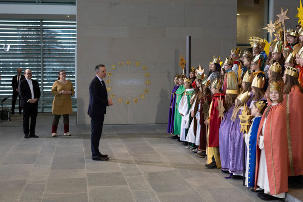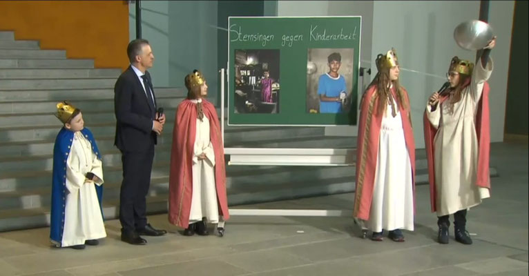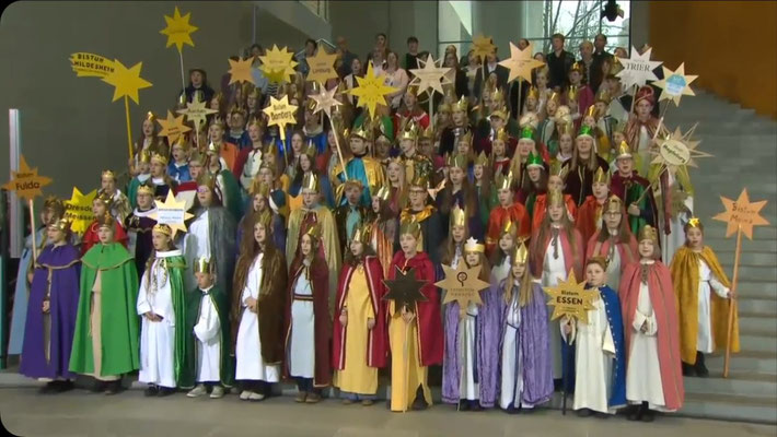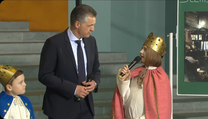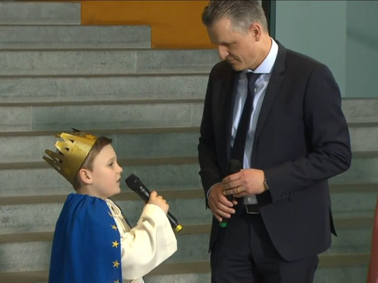 Eine Gruppe von Sternsingern aus unserer Pfarrei vertrat das Bistum Essen heute (06. Januar 2026, 14:00 Uhr) beim Sternsinger Empfang im Kanzleramt. Leider konnte Bundeskanzler Friedrich Merz nicht persönlich dabei sein (er wird es bereut haben). Die vier Lüdenscheider Sternsinger waren nicht nur einfach dabei, sie durften dem Kanzleramtsminister Thorsten Frei das diesjährige Anliegen der Sternsinger in einem kleinen Anspiel vortragen.