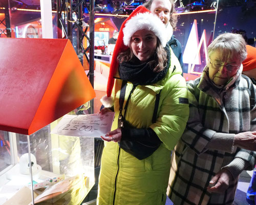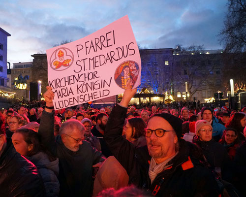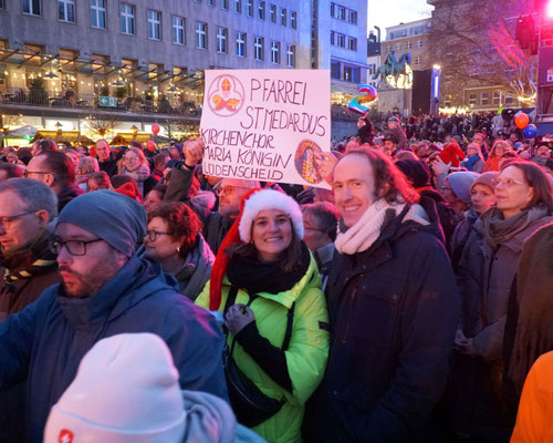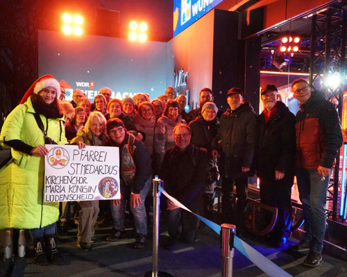 Die Pfarrei hat gesammelt! 2.500,00€ sind dabei zusammengekommen. Diesen Betrag übergab der Kirchenchor der Gemeinde Maria Königin im Rahmen seines Jahresausflugs auf dem Burgplatz in Essen am Glashaus des WDR für die Aktion "WDR Weihnachtswunder".