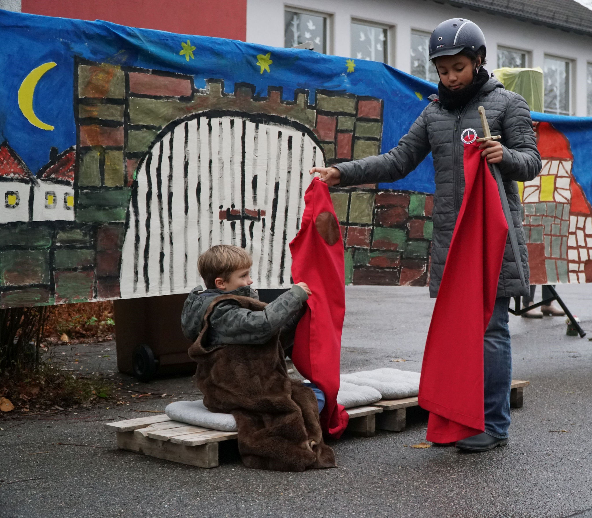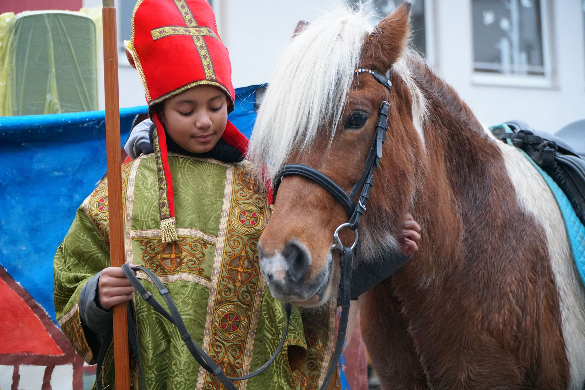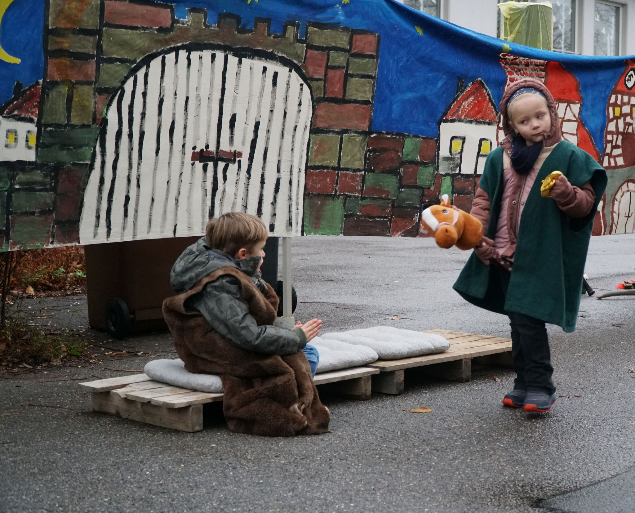 Anschließend spielten Kinder das Martinsgeschehen nach, wobei das Islandpferd auf dem unser(e) junge(r) Martin(a) ritt, bei den Kleinesten, für strahlende Augen sorgte. So wurde die Geschichte des heiligen Martin auf eine ganz besondere Art und Weise lebendig.
