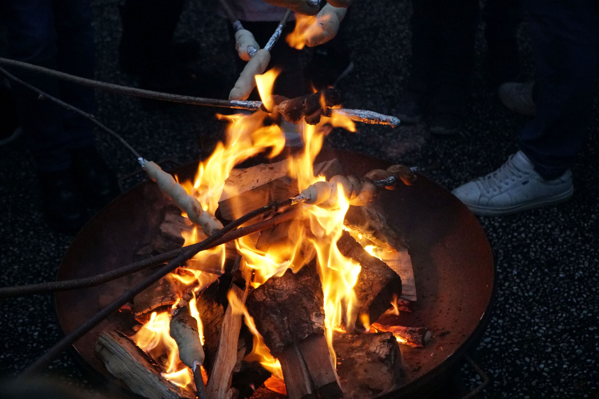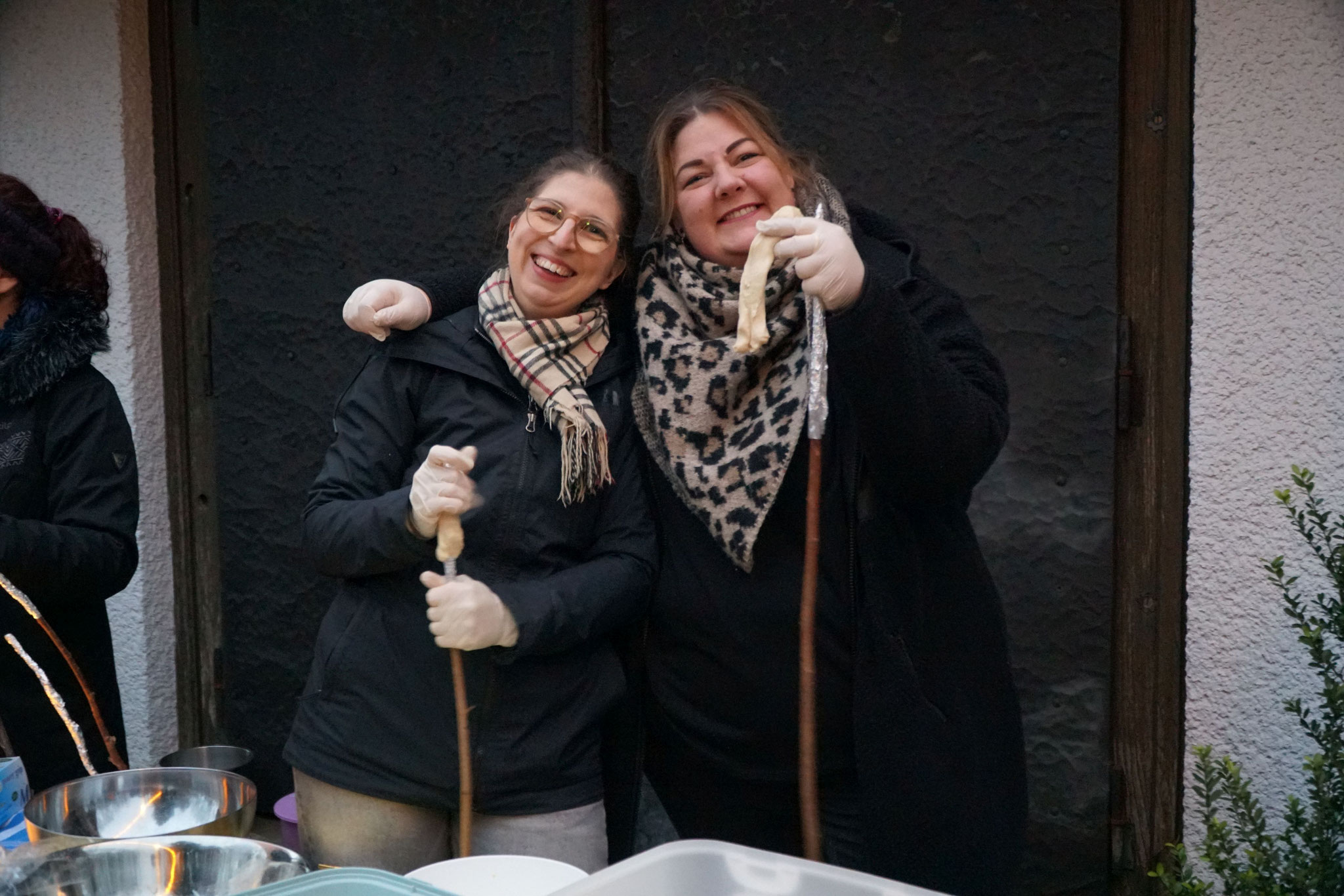 Wieder zurück erwartete die Menschen eine gemütliche Lagerfeueratmosphäre rund um den Kirchturm von Maria Königin. Duftendes Stockbrot, süße Brezelstücke und wärmender Punsch luden zum Verweilen ein.