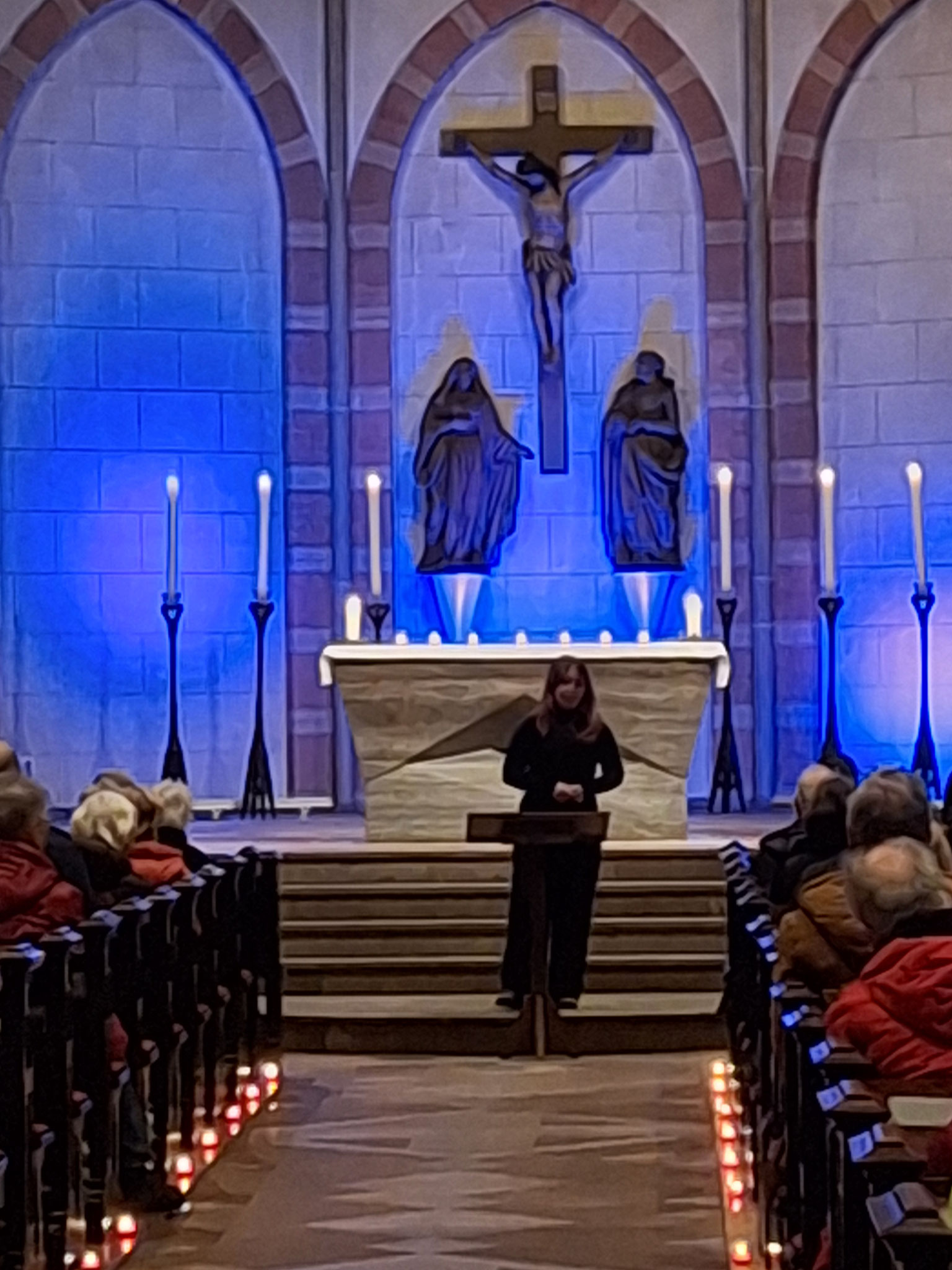 "Klangvoll" - der Kirchenchor am Sauerfeld mit Kirchenmusikerin Luisa Blas - und Chornetti - geleitet von Hanno Kreft - sangen bekannte und unbekanntere Adventslieder, in mehrstimmigen Sätzen oder in raffiniertem Arrangement. So erklangen im Wechsel ganz unterschiedliche adventliche Melodien. Bei "Wir sagen euch an" oder beim abschließenden "Tochter Zion" waren alle eingeladen, mitzusingen - und taten es mit hörbarer Freude. Ein Abend, der stimmungsvoll und geistlich den Advent bereichert hat. Und unsere wieder eröffnete Pfarrkirche schien "wie dafür gemacht." Ein herzlicher Dank gilt den Chören für dieses gemeinsame Konzert.