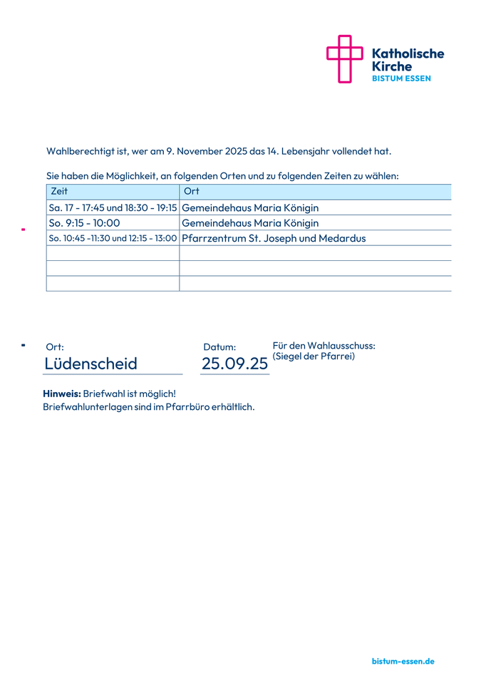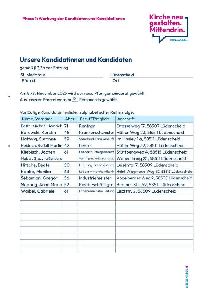 Der Wahlausschuss zum Pfarrgemeinderat hat die Vorschlagsliste für die
